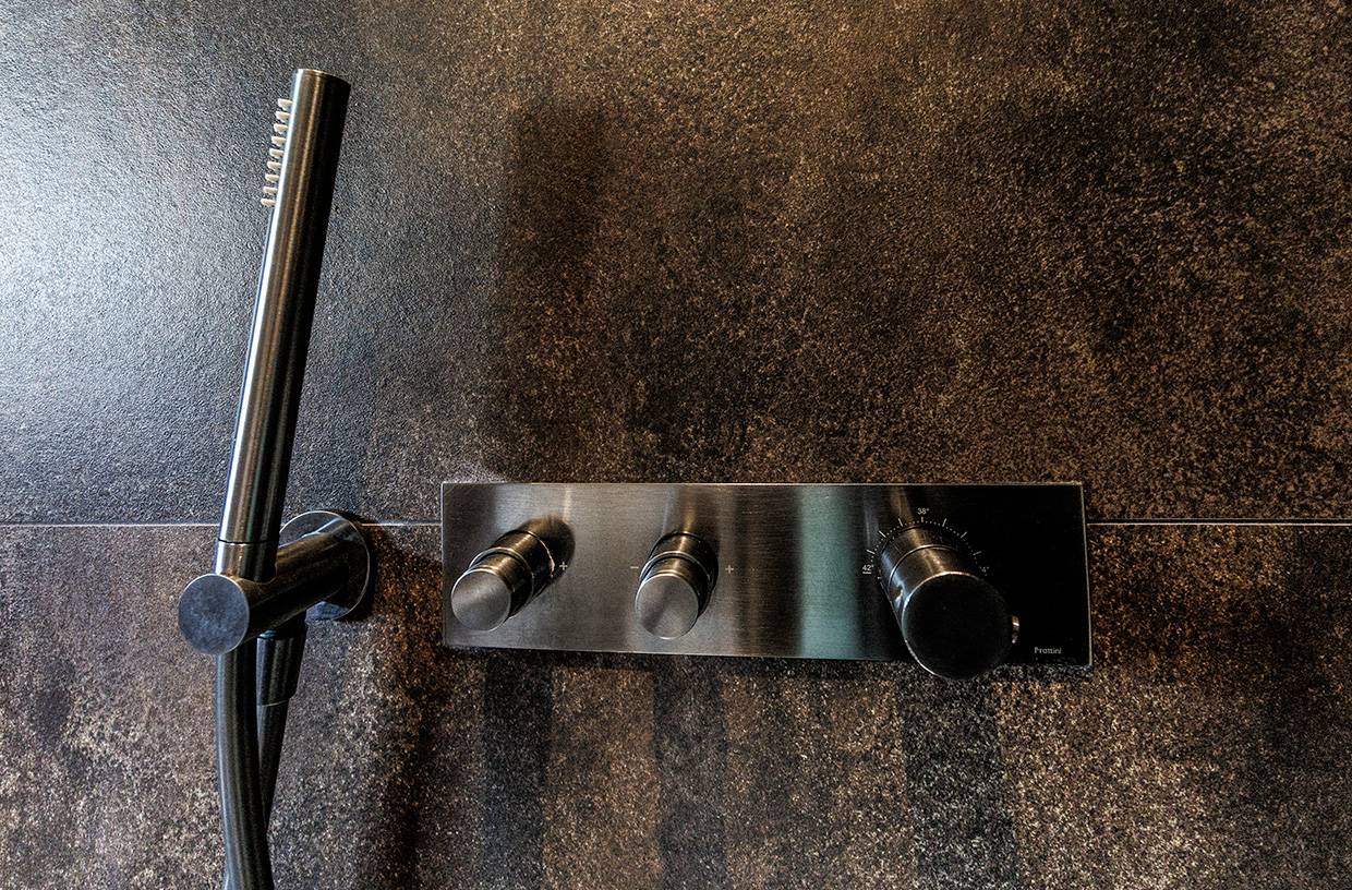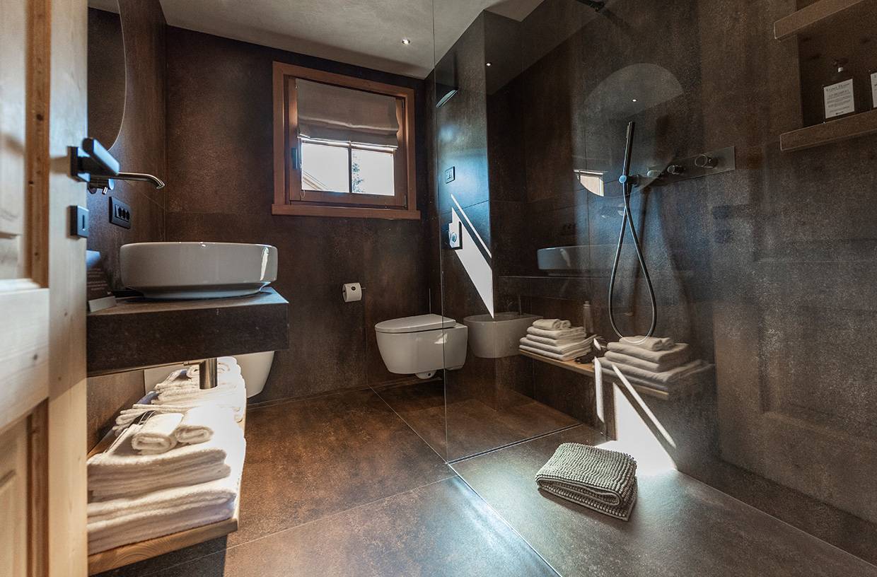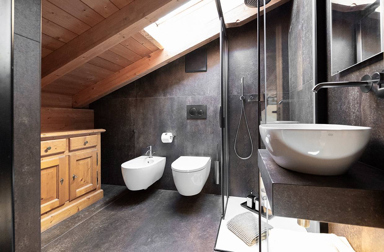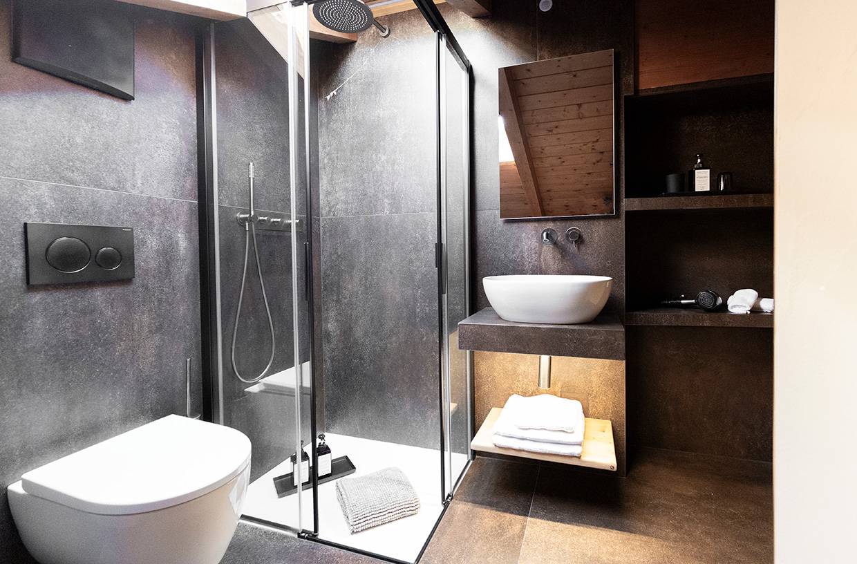 Bagno con doccia, scalda asciugamani, phon, servizio cortesia